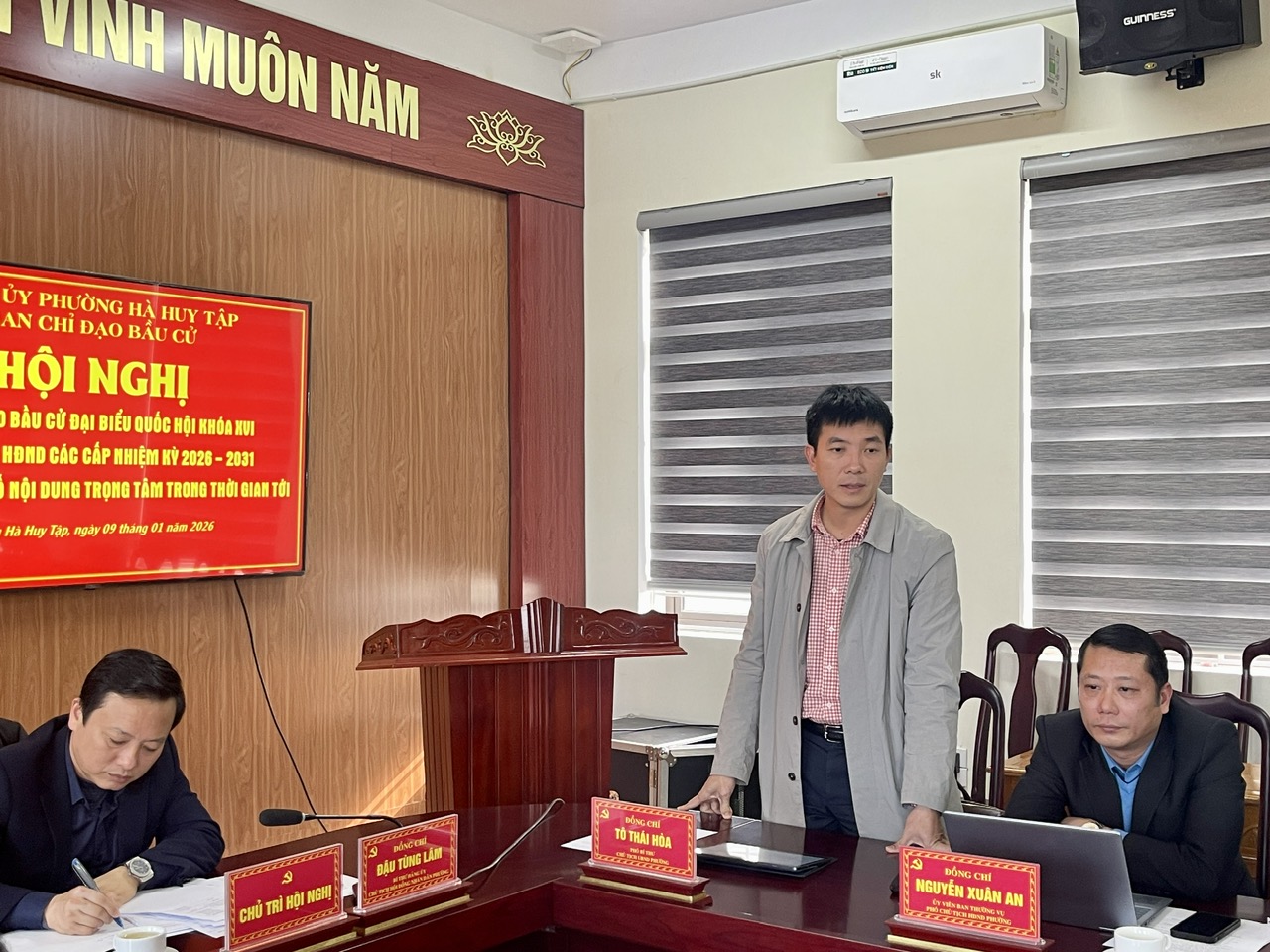 Phát biểu kết luận hội nghị, đồng chí Đậu Tùng Lâm, Bí thư Đảng ủy, Chủ tịch HĐND, Chủ tịch Ủy ban Bầu phường phường yêu cầu Ban Chỉ đạo bầu cử, Ủy ban bầu cử phường và các đơn vị liên quan tập trung thực hiện tốt một số nhiệm vụ trọng tâm trong thời gian tới. Trong đó, cần khẩn trương xây dựng dự toán kinh phí phục vụ bầu cử bảo đảm đúng quy định; tổ chức tập huấn nghiệp vụ cho các thành viên ban bầu cử, tổ bầu cử; thực hiện đầy đủ các bước hiệp thương, giới thiệu người ứng cử theo đúng trình tự, thời gian luật định. Làm tốt công tác rà soát, xác định chính xác số lượng cử tri dự kiến.