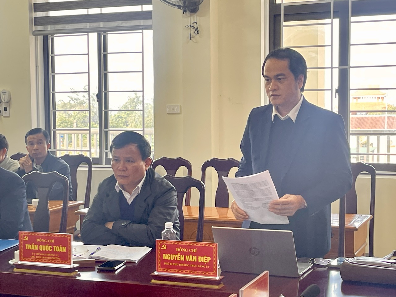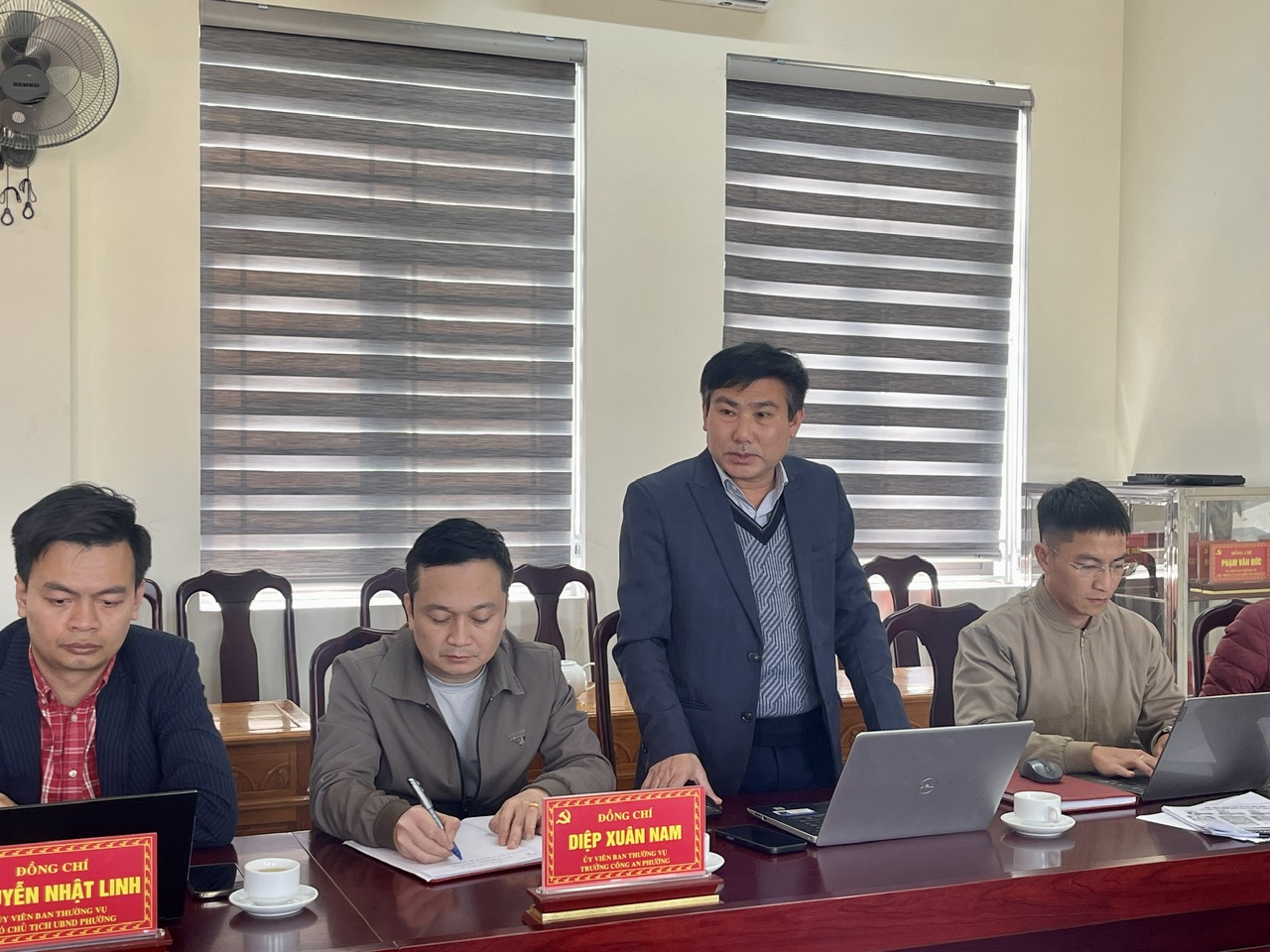 Đồng Chí Nguyễn Văn Điệp, PBT thường trực Đảng ủy thông qua kế hoạch phân công nhiệm vụ cho các thành viên BCĐ bầu cử phường, nhiệm kỳ 2026 - 2031.