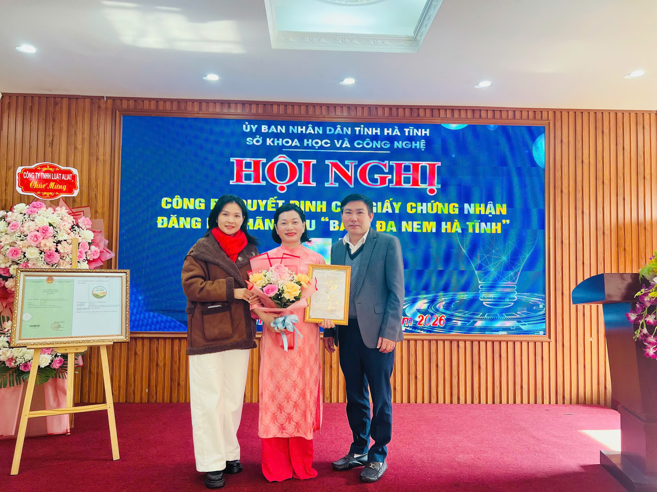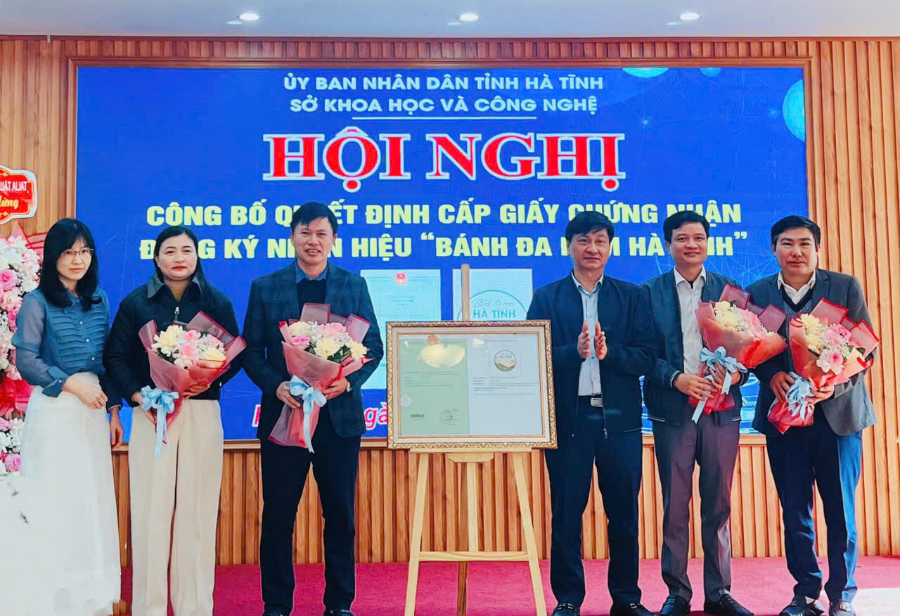 Lãnh đạo Sở KH&CN tỉnh Hà Tĩnh trao Giấy chứng nhận nhãn hiệu “Bánh đa nem Hà Tĩnh” cho các cơ sở sản xuất trên địa bàn tỉnh