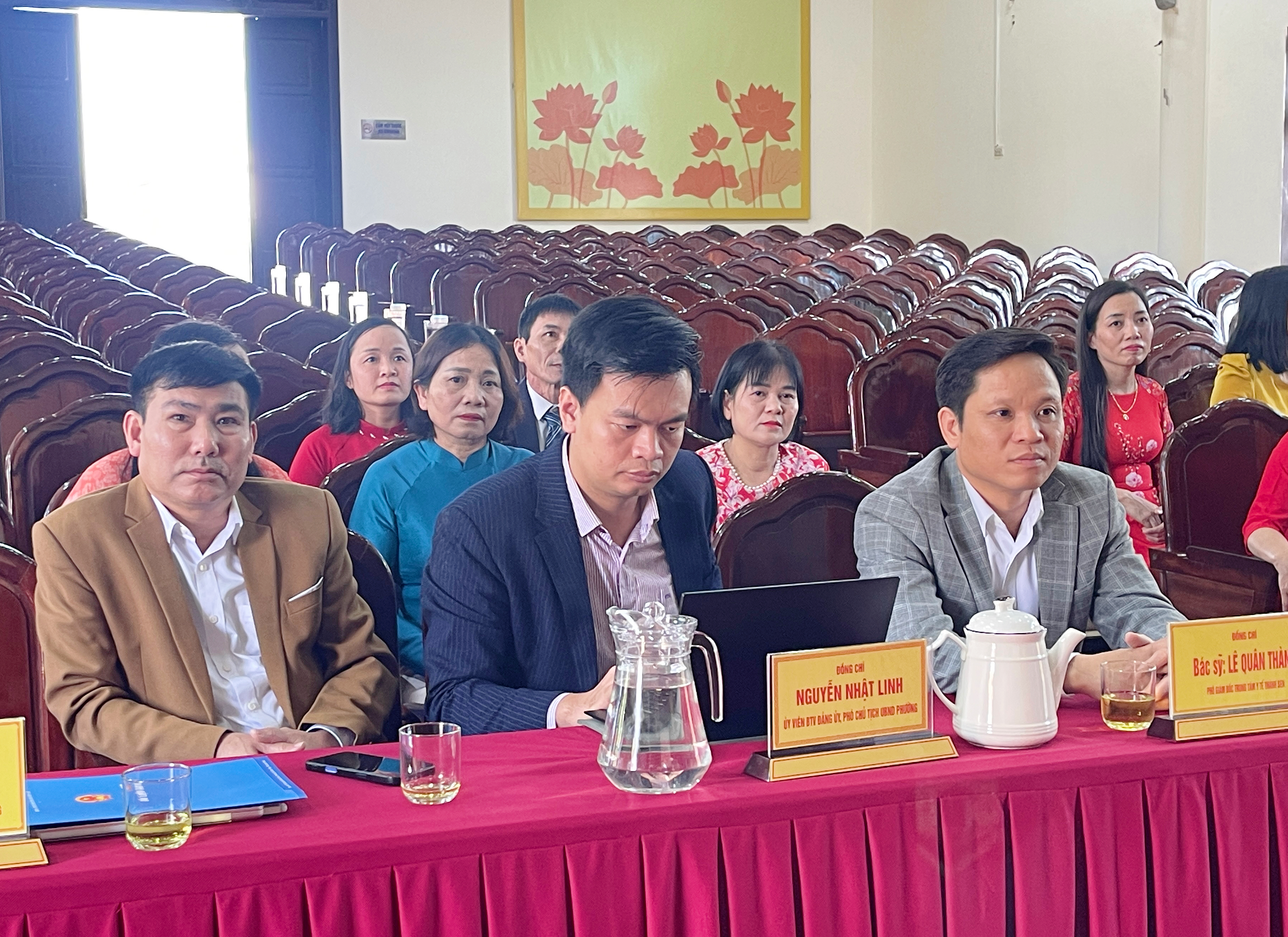 Và đại diện lãnh đạo Trung tâm y tế Thành Sen tặng hoa chúc mừng tập thể viên chức Trạm y tế phường Hà Huy Tập