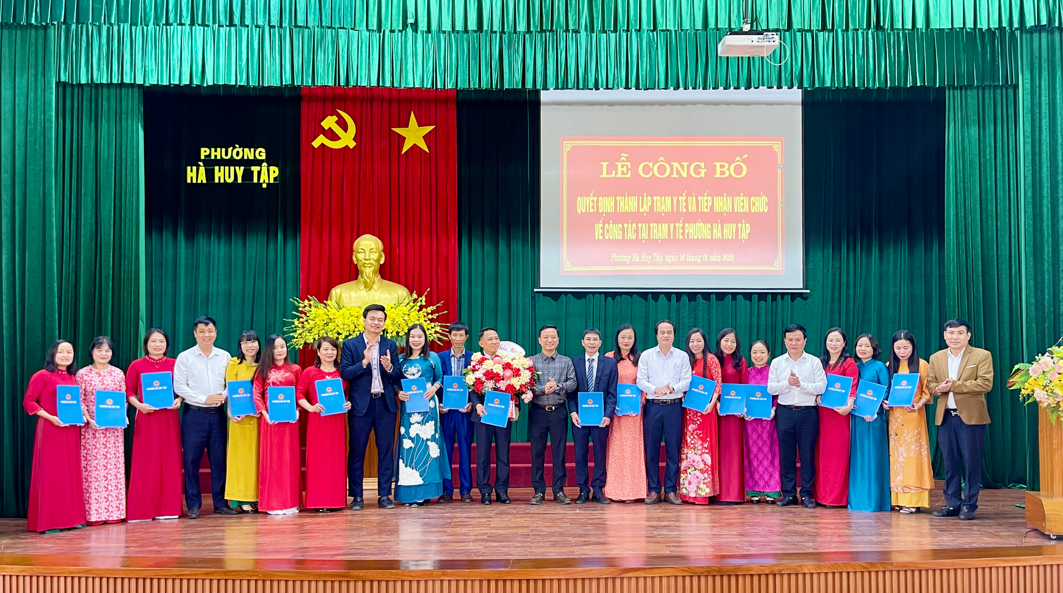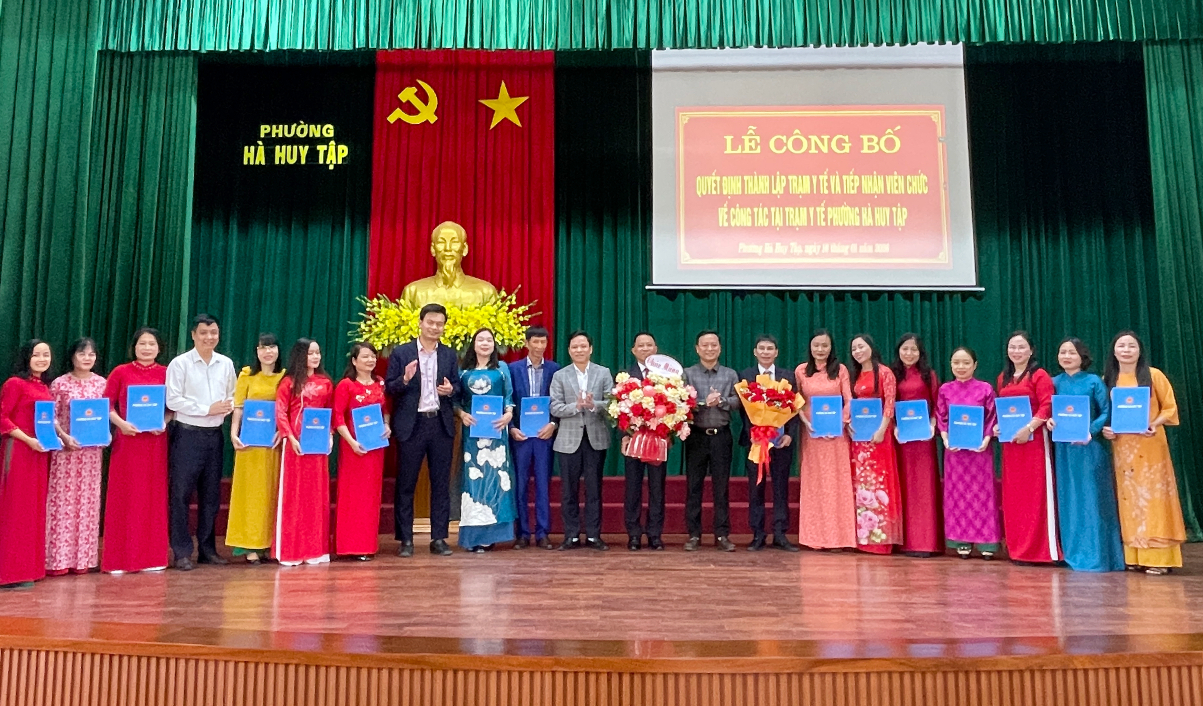 Lãnh đạo Phường Hà Huy Tập tặng hoa chúc mừng tập thể viên chức Trạm y tế phường