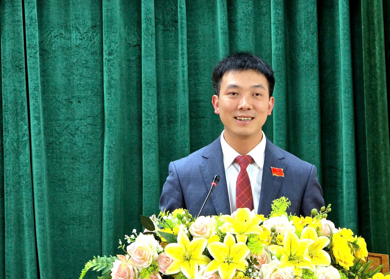 Đồng chí Dương Thành Trung, PBT Đảng ủy, Tân Chủ tịch UBND phường Hà Huy Tập phát biểu nhận nhiệm vụ