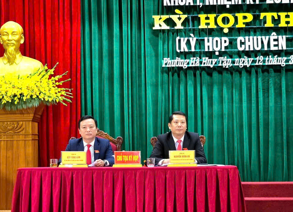 Tại kỳ họp, HĐND phường Hà Huy Tập đã công bố Nghị quyết của Thường trực HĐND tỉnh chỉ định ông Dương Thành Trung, phường Hà Huy Tập nhiệm kỳ 2025 - 2030 tham gia BCH, Ban Thường vụ, giữ chức vụ Phó Bí thư Đảng ủy phường Hà Huy Tập, nhiệm kỳ 2021 - 2026; Thực hiện quy trình miễn nhiệm chức vụ Chủ tịch UBND phường Hà Huy Tập khóa I, nhiệm kỳ 2021-2026 đối với ông Tô Thái Hòa, Phó Bí thư Đảng ủy, Chủ tịch UBND phường Hà Huy Tập, thôi tham gia Ban Chấp hành, Ban Thường vụ Đảng ủy và thôi giữ chức Phó Bí thư Đảng ủy phường Hà Huy Tập, điều động đến nhận công tác tại Sở Xây dựng kể từ ngày 12/3/2026. Bầu bổ sung ông Dương Thành Trung, Phó Bí thư Đảng phường Hà Huy Tập giữ chức Chủ tịch UBND phường Hà Huy Tập khóa I, nhiệm kỳ 2021-2026.