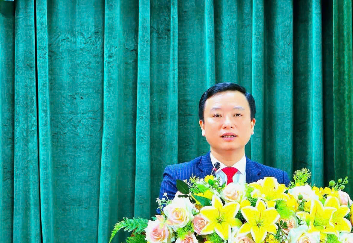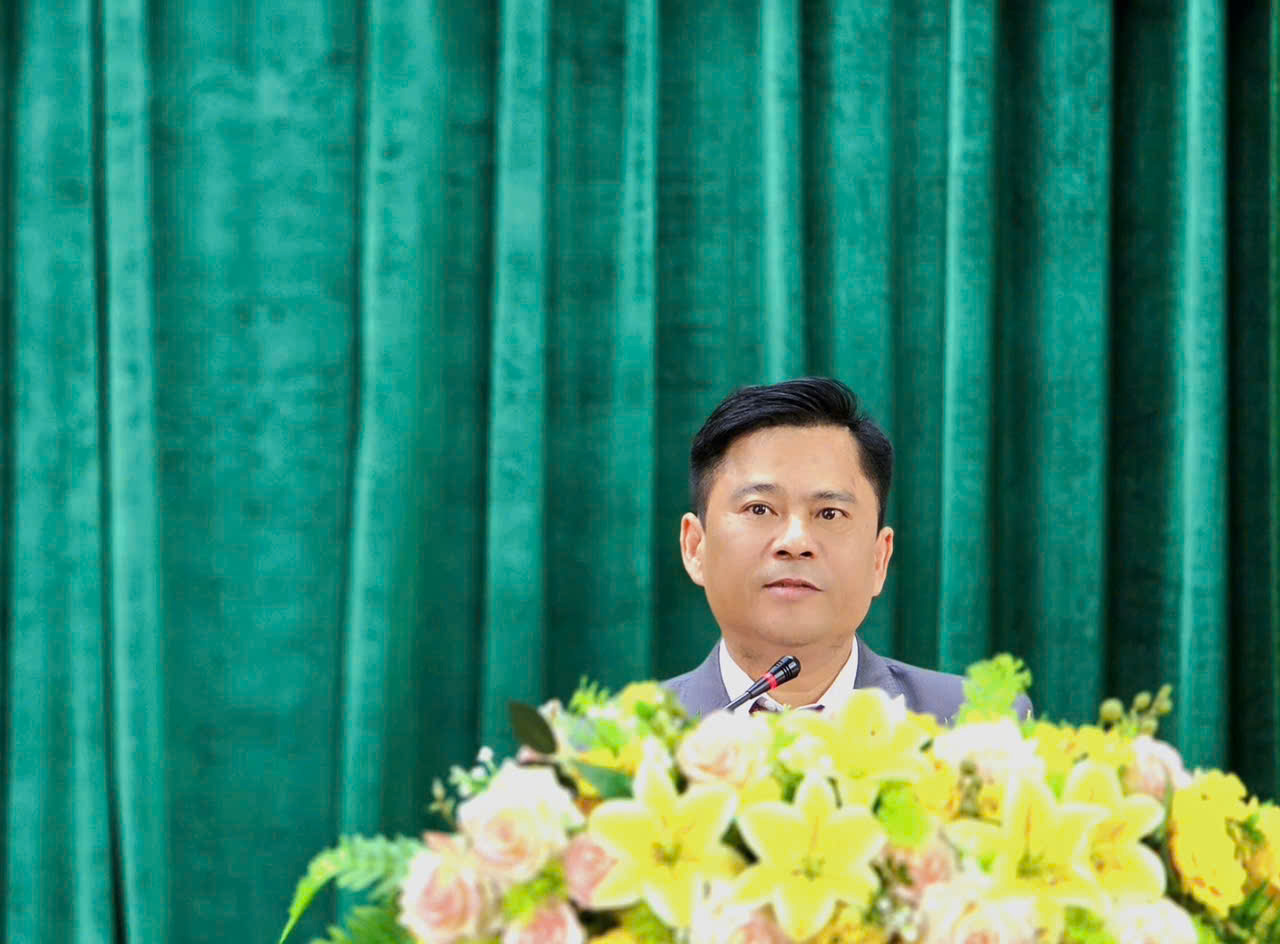 Đồng chí Đậu Tùng Lâm, Bí thư Đảng uỷ, Chủ tịch HĐND phường Hà Huy Tập phát biểu chúc mừng đồng chí Tân PGĐ Sở Xây dựng Tô Thái Hòa và Tân Chủ tịch UBND phường Dương Thành Trung