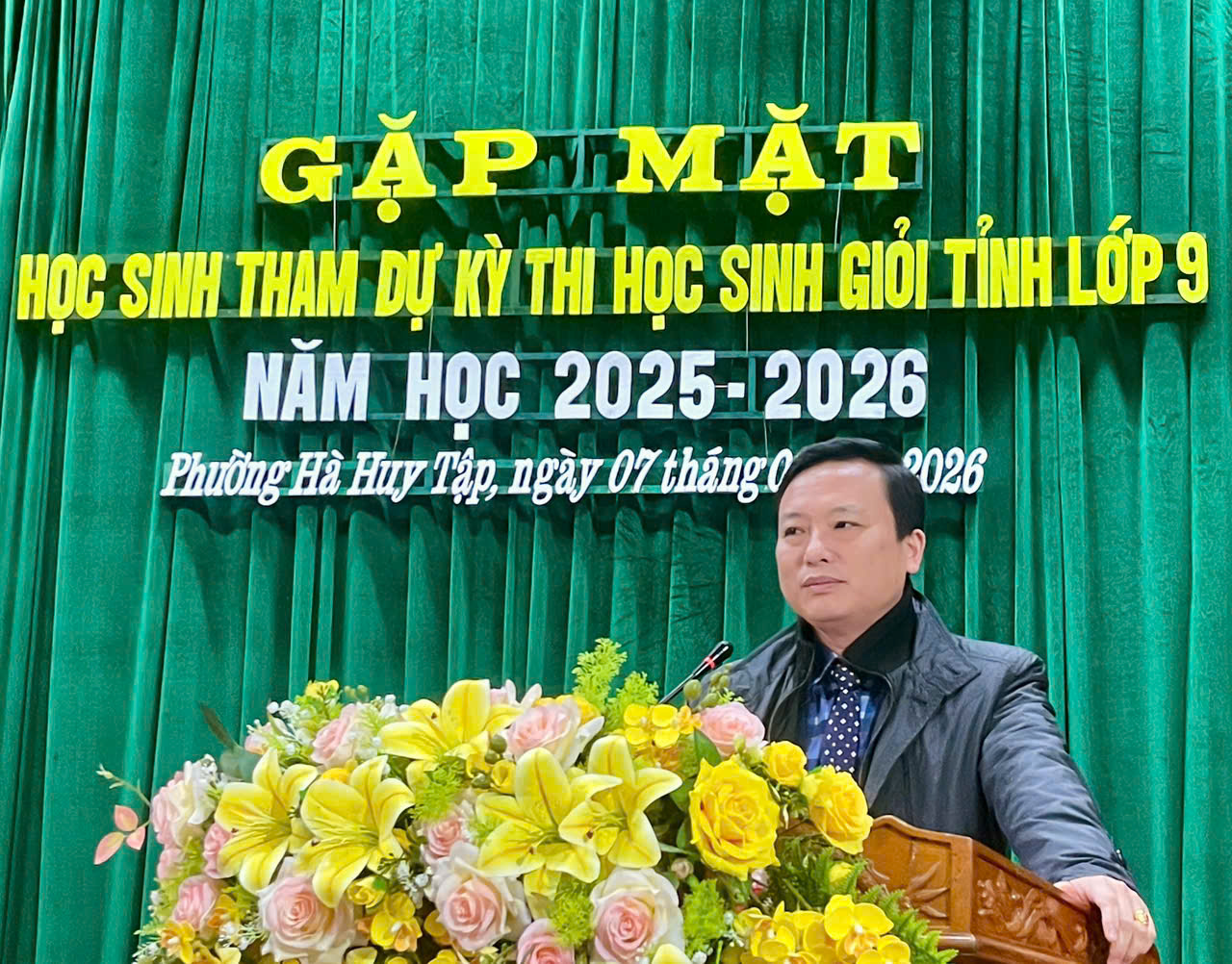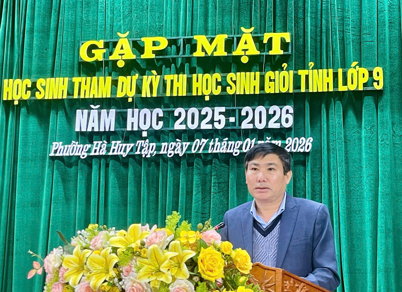 Phát biểu động viên giáo viên và học sinh tham gia kỳ thi học sinh giỏi tỉnh lớp 9 của phường, Đồng chí Đậu Tùng Lâm - Bí thư Đảng ủy, Chủ tịch HĐND phường đã biểu dương, ghi nhận và đánh giá cao nỗ lực của các giáo viên tham gia bồi dưỡng đội tuyển và các em học sinhlớp 9 tham dự kỳ thi cấp tỉnh năm học 2025 -2026.