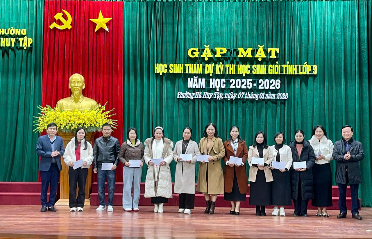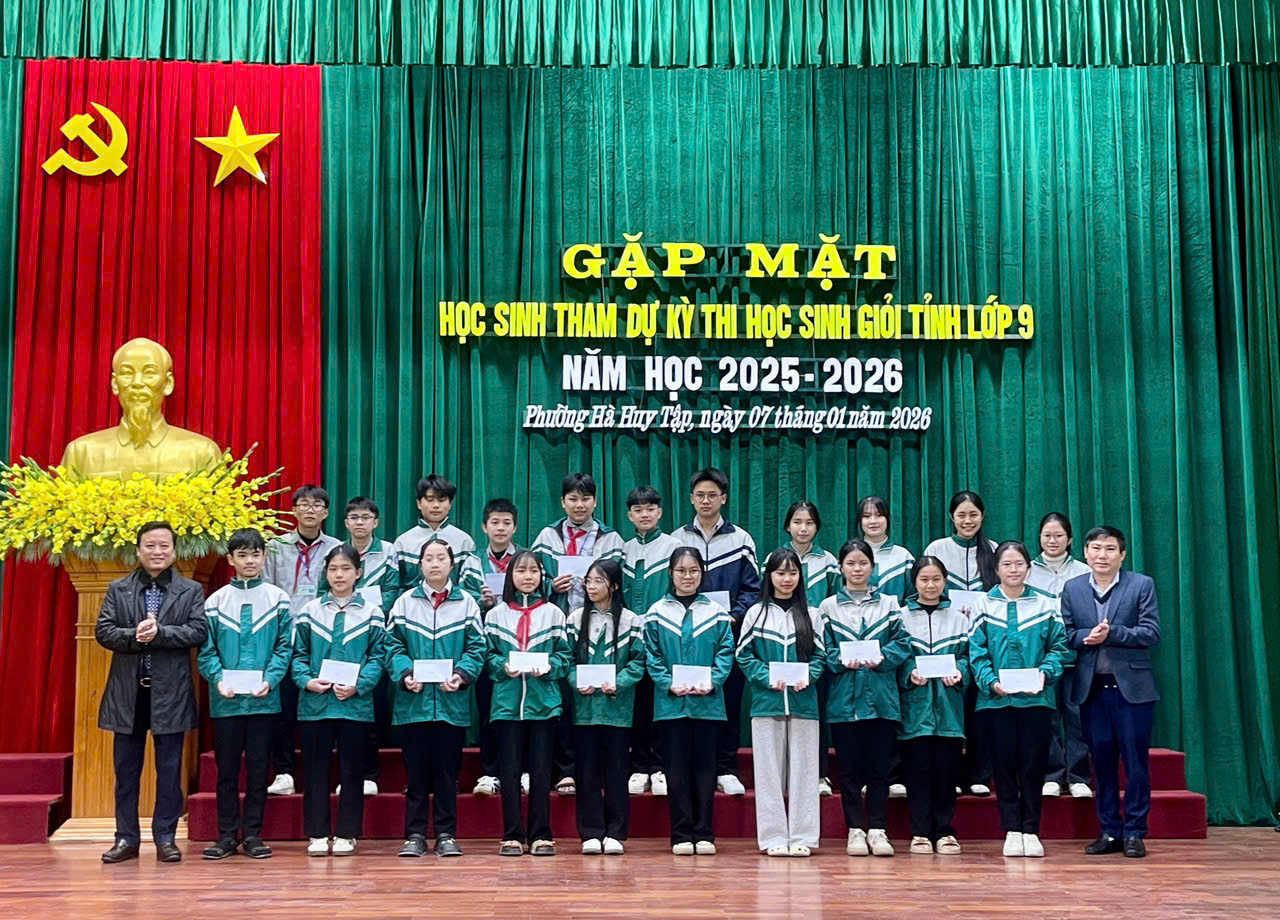 Tham gia Kỳ thi học sinh giỏi lớp 9 cấp tỉnh, năm học 2025 – 2026, phường Hà Huy Tập có 21 học sinh đến từ 02 trường THCS trên địa bàn gồm Trường THCS Nguyễn Hoành Từ và THCS Thạch Đài. Tham gia kỳ thi lần này, đội tuyển học sinh giỏi lớp 9 phường Hà Huy Tập sẽ dự thi 10 bộ môn: Toán, Khoa học tự nhiên, Ngữ văn, Lịch sử và Địa lý, Giáo dục công dân, Tiếng Anh, Tin học. Theo kế hoạch, Kỳ thi Học sinh giỏi tỉnh lớp 9 sẽ diễn ra vào ngày 13/1/2026 tới.