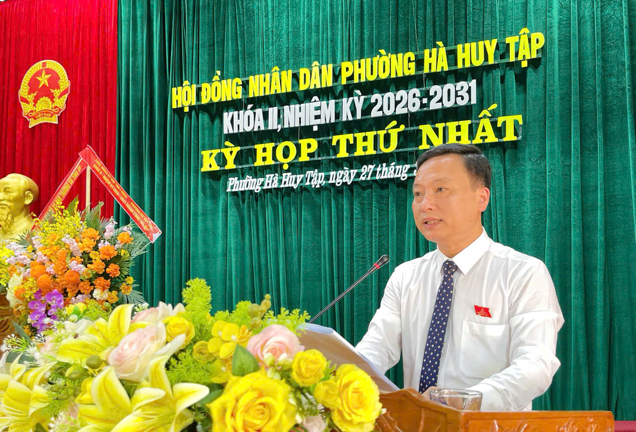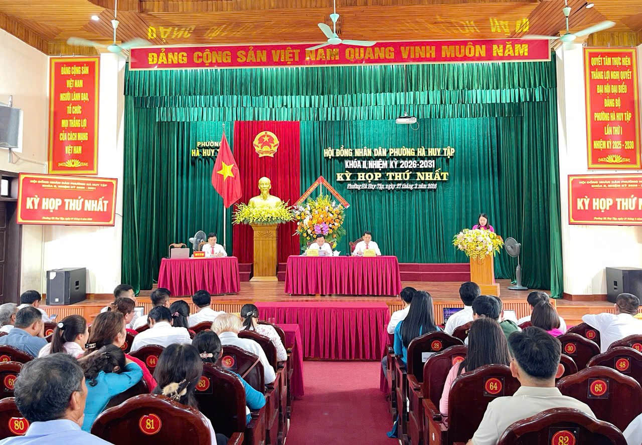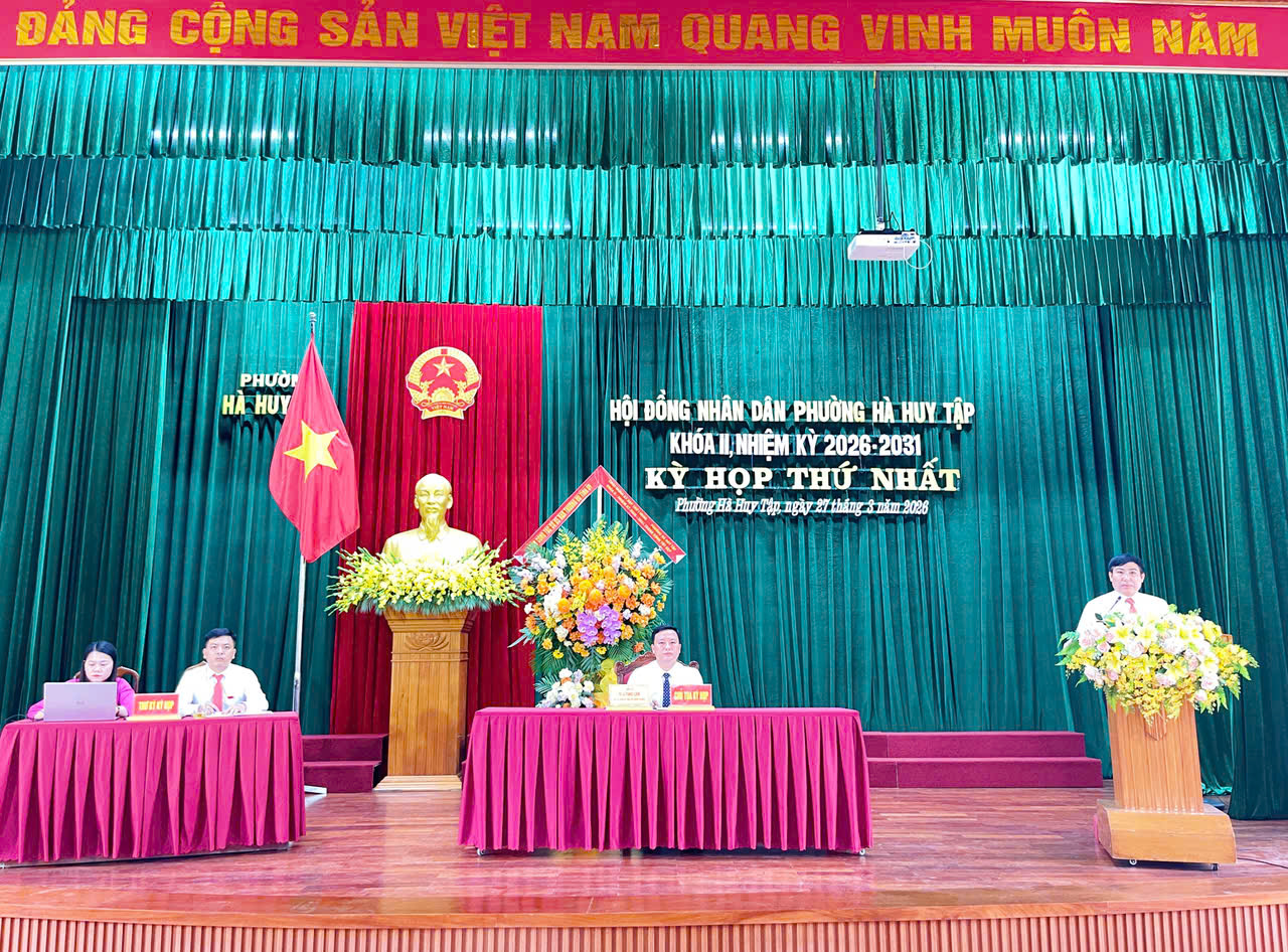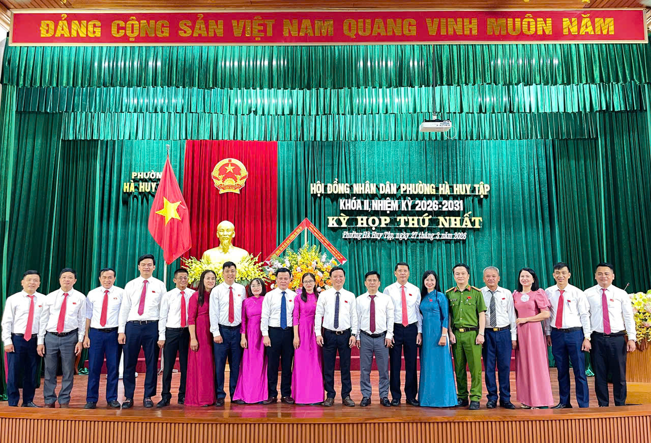 Tại kỳ họp, sau khi nghe đại diện Ủy ban bầu cử phường Hà Huy Tập thông qua báo cáo kết quả bầu cử và xác nhận tư cách 21 đại biểu HĐND phường khóa II, nhiệm kỳ 2026 – 2031, HĐND phường Hà Huy Tập khóa II đã tiến hành bầu các chức danh chủ chốt của HĐND và UBND phường theo đúng quy định. Với sự tín nhiệm cao, ông Đậu Tùng Lâm, Bí thư Đảng ủy tiếp tục được bầu giữ chức Chủ tịch HĐND phường; ông Nguyễn Văn An được bầu giữ chức Phó Chủ tịch HĐND phường; ông Dương Thành Trung được bầu giữ chức Chủ tịch UBND phường; ông Nguyễn Nhật Linh và ông Phạm Mạnh Hiền được bầu giữ chức Phó Chủ tịch UBND phường. Kỳ họp cũng đã bầu Trưởng ban các Ban HĐND, các Ủy viên UBND phường.
