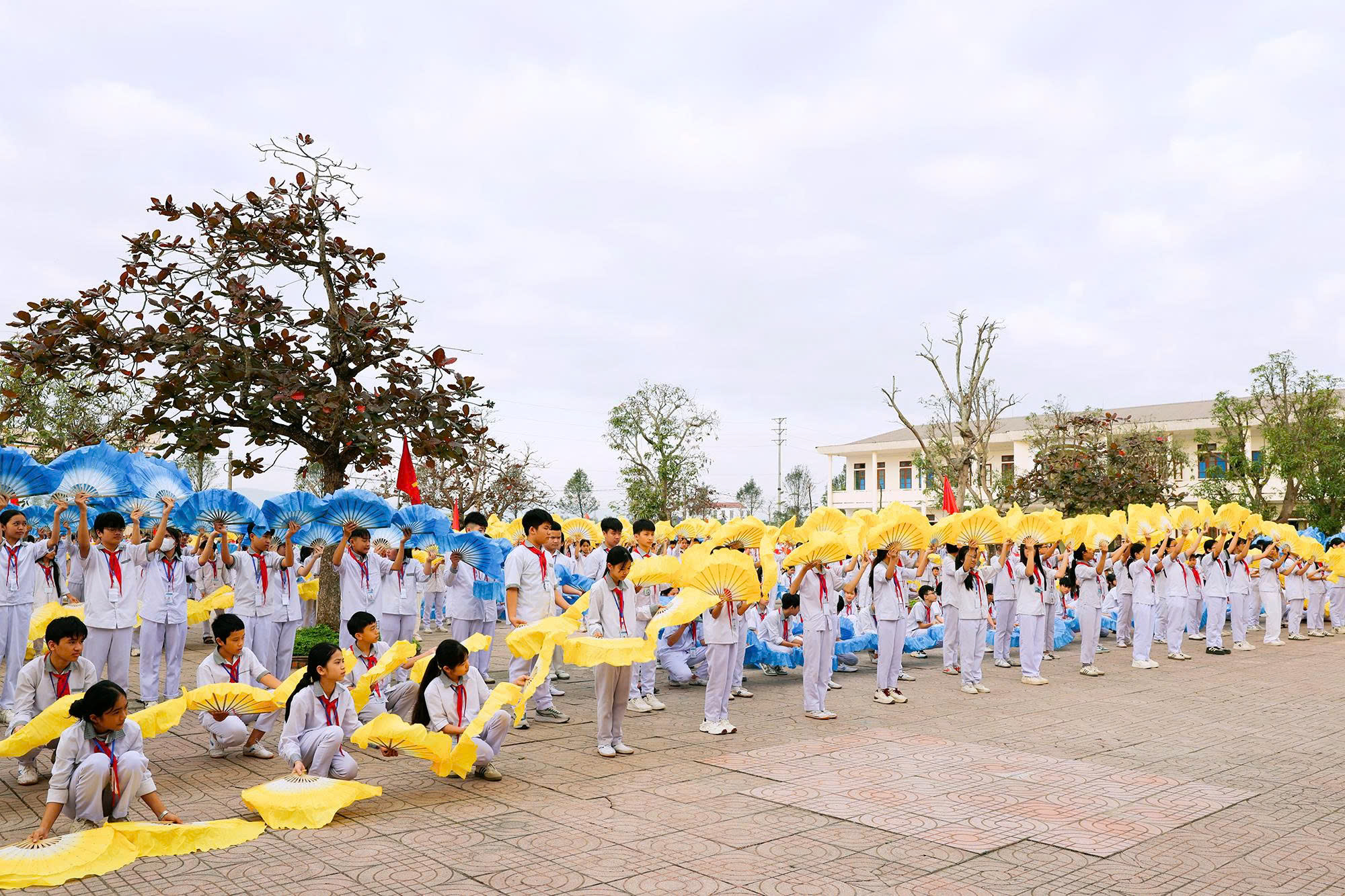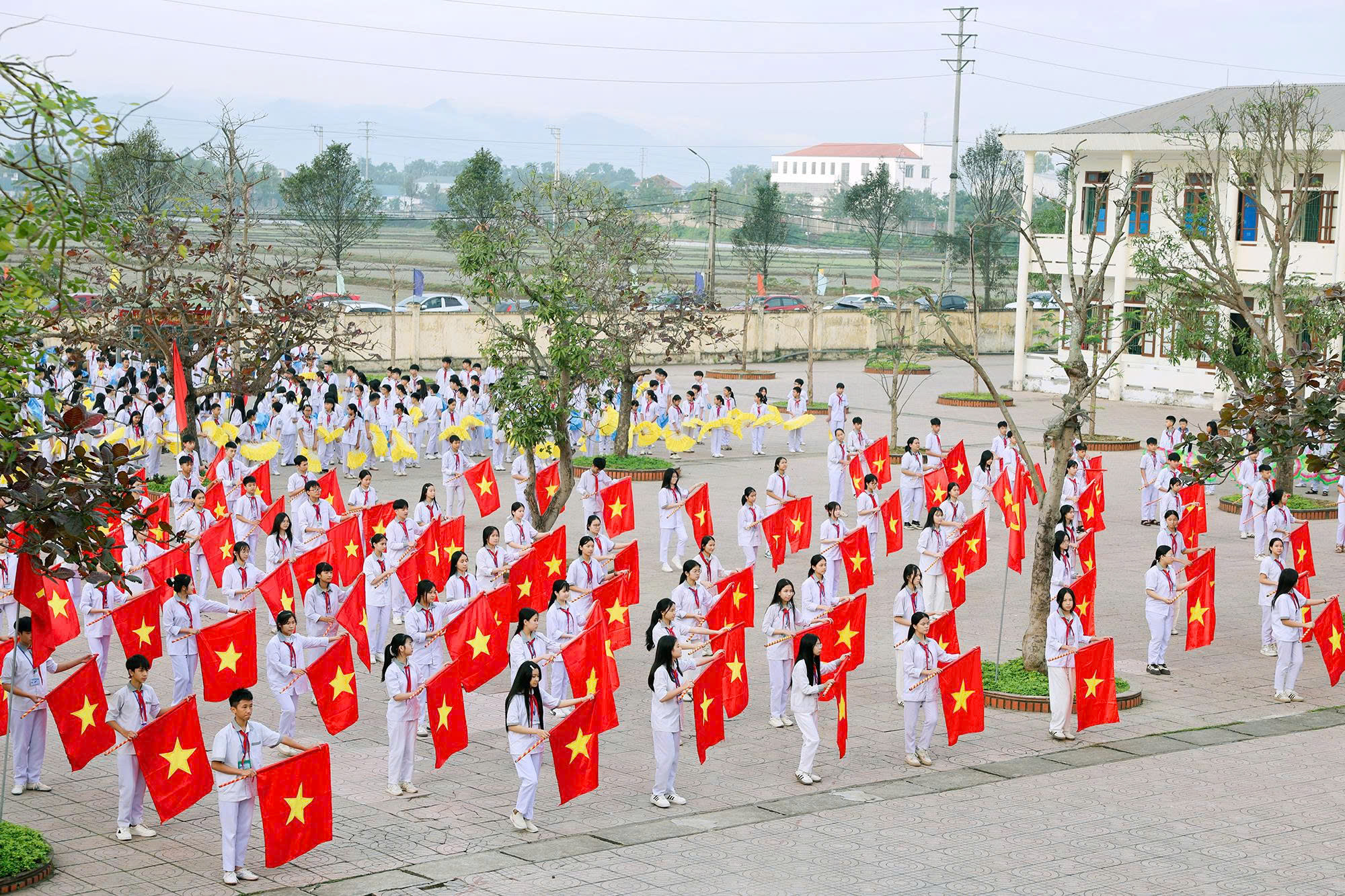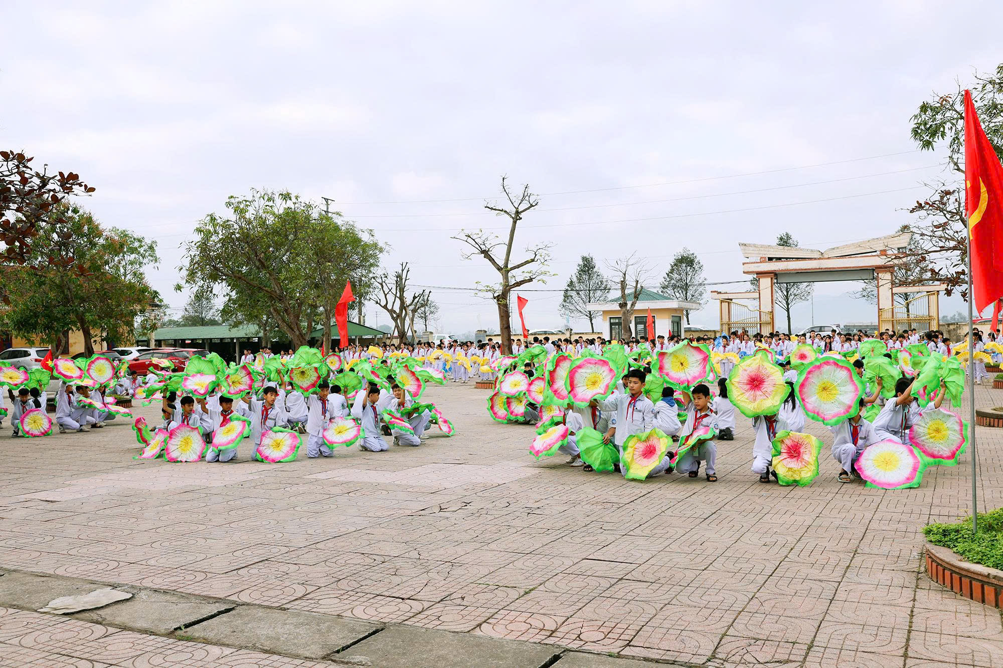 Các đại biểu tham dự lễ khai mạc tặng cờ thi đua cho các đội tuyển tham gia thi đấu tại Đại hội Điền kinh - Thể thao học sinh phổ thông phường Hà Huy Tập năm học 2025 -2026