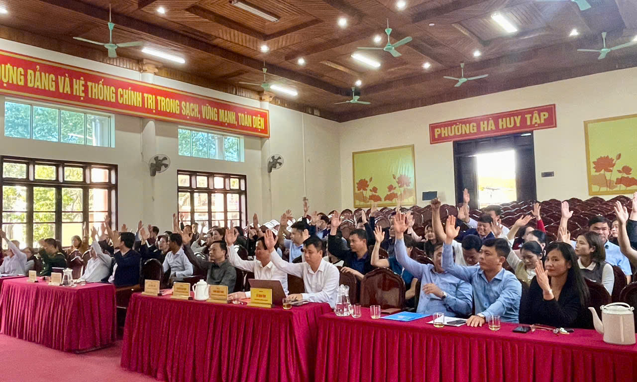 Cử tri cơ quan Đảng ủy - HĐND - UBND - UB MTTQ và BCH quân sự phường biểu quyết đồng tình ủng hộ 30 ông, bà được giới thiệu tham gia HĐND phường nhiệm kỳ 2026–2031