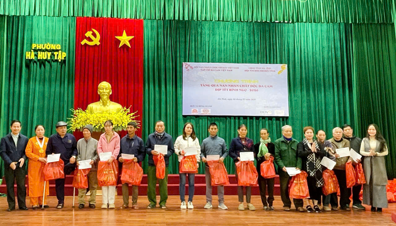 Tại chương trình, tạp chí Da cam Việt Nam đã trao tặng 101 suất quà, mỗi suất quà trị giá 600 ngàn đồng, trong đó 500 đồng tiền mặt và 100 ngàn đồng nhu yếu phẩm cho các nạn nhân. Trong đó trao cho phường Hà Huy Tập 51 suât, xã Thạch Xuân 25 suất và xã Toàn Lưu 25 suất.